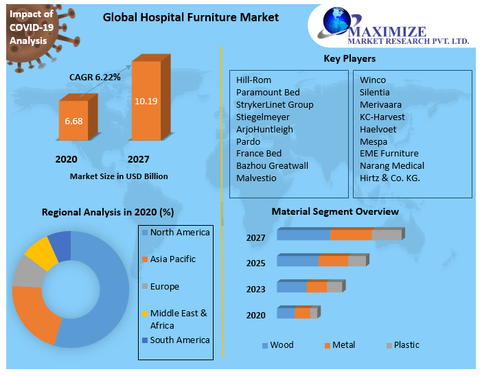 Global Hospital Furniture Market to be Worth USD 10.19 Billion At A CAGR Of 6.22% by the Year 2027